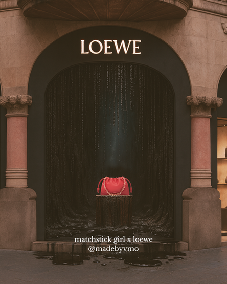 “Loewe Windows — Fairytales Reimagined” is a self-initiated concept series that reimagines the Spanish luxury house through my personal lens of storytelling, nostalgia, and craft. Drawing on childhood favorites like The Little Mermaid, The Princess and the Pea, The Matchstick Girl, Snow White, Sailor Moon, and even playful radishes from a Chinese song Baluobuo, I designed six conceptual window displays that merge Loewe’s heritage of leatherwork and surrealism with tactile, beaded textures and bold narrative settings.